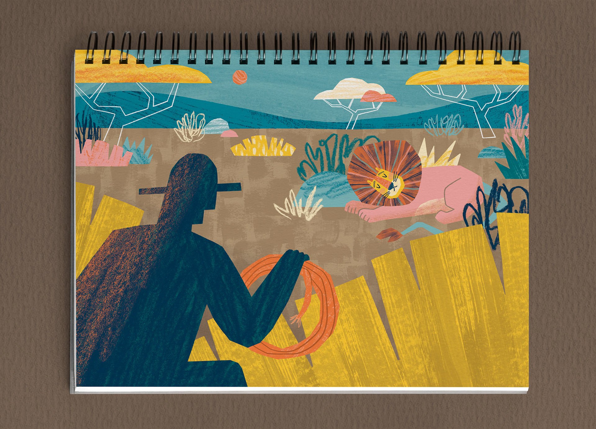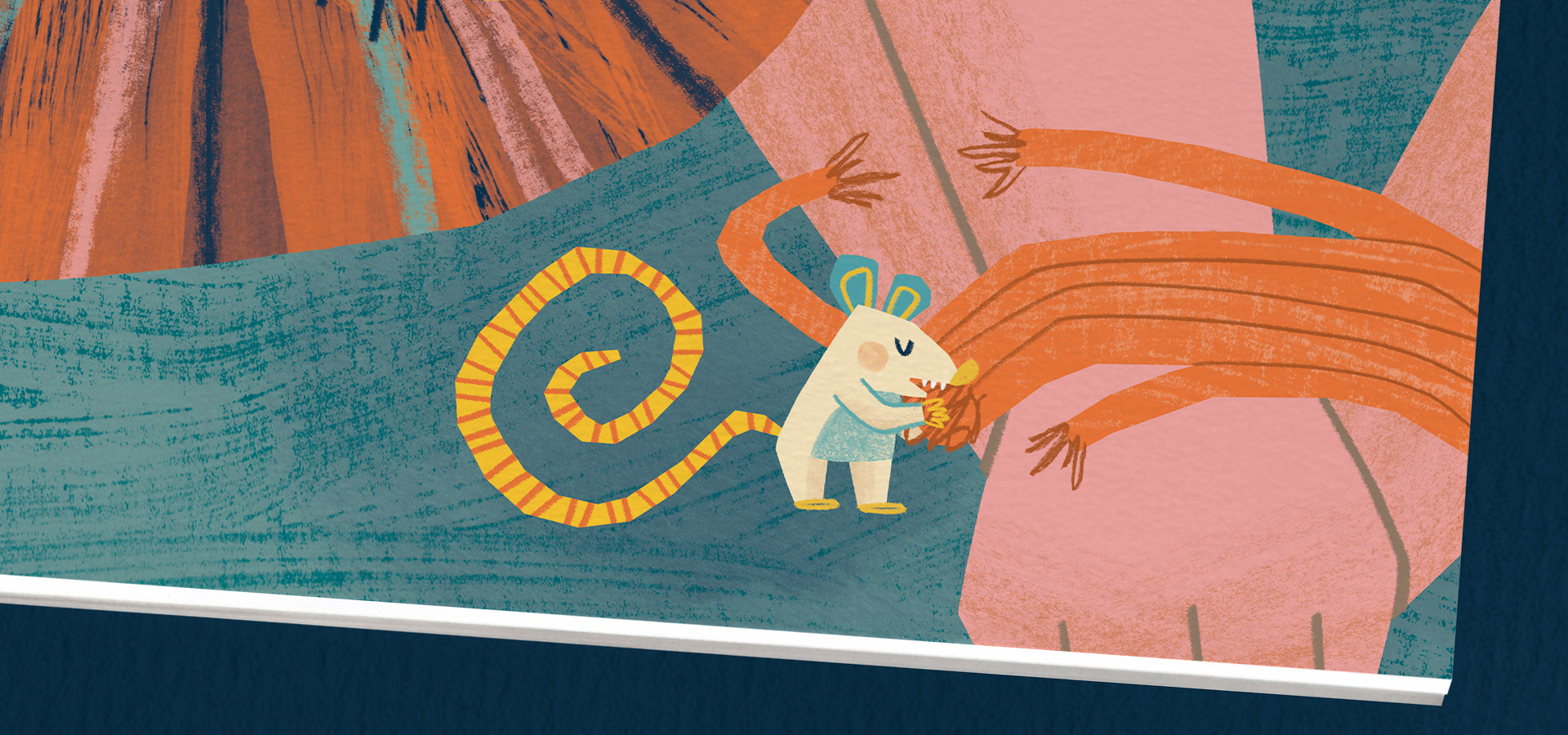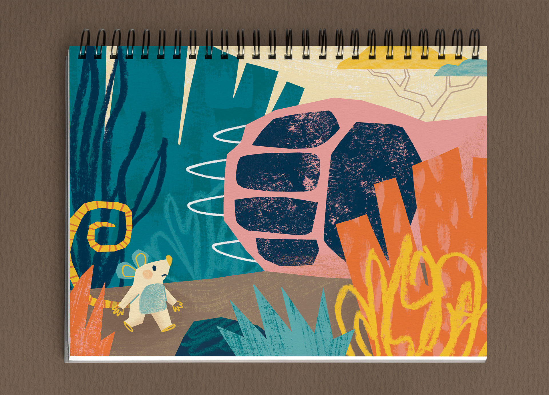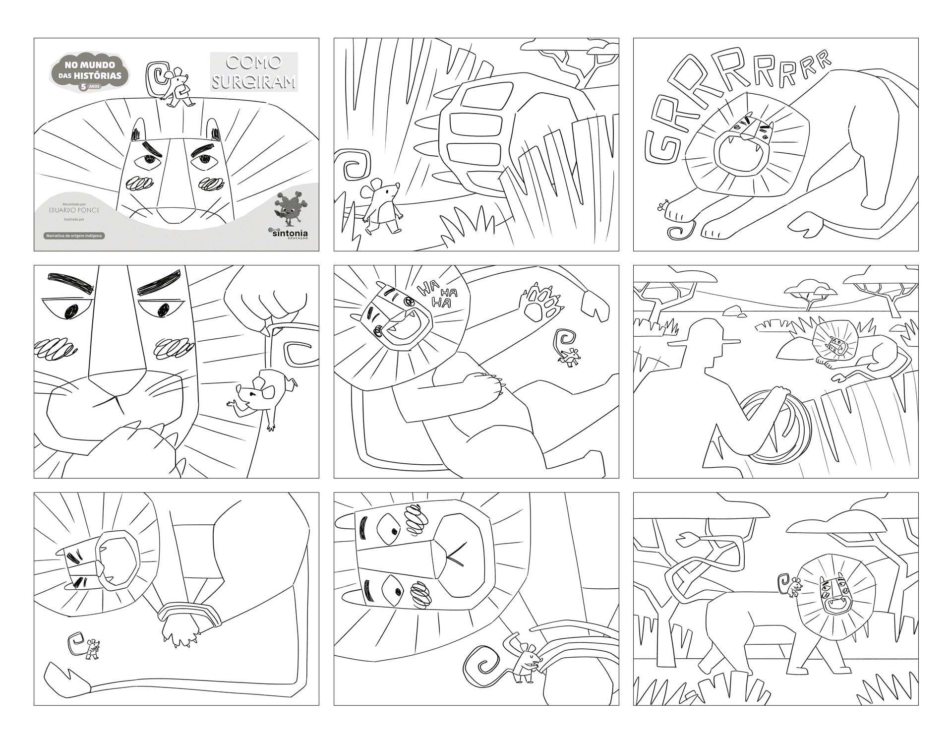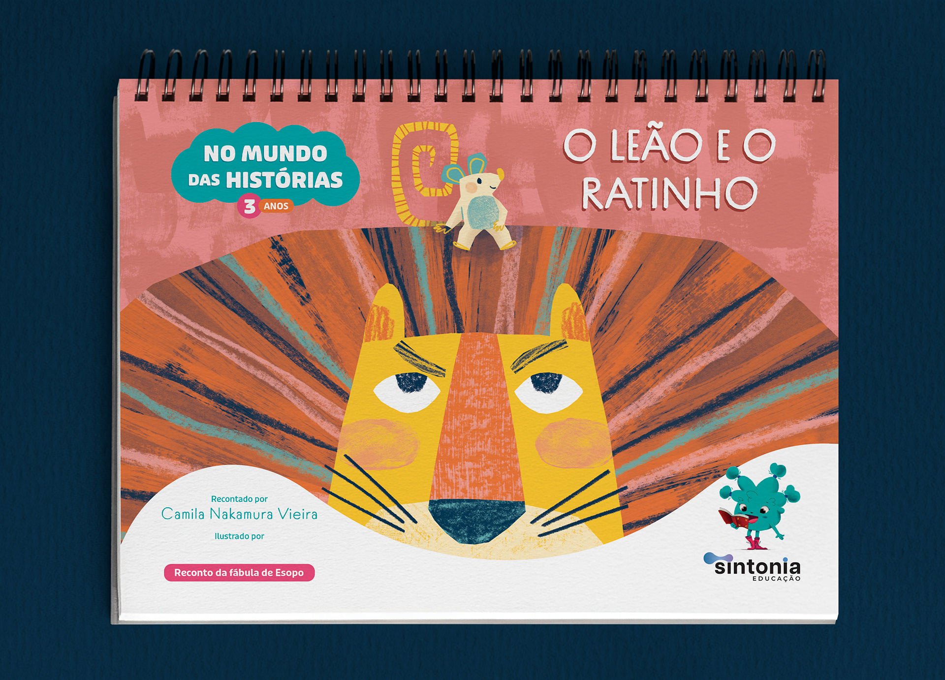 Illustrations for the children's book “The Lion and the Mouse” (2025), with text by Camila Nakamura Vieira and published by Editora Sintonia Educação. This work is part of the collection “In the World of Stories – 3 Years”, which features books with tales and fables from various cultures, each illustrated by a different artist. The collection was produced in a flip chart format with spiral binding, allowing teachers to read the stories aloud in the classroom while students follow along with the illustrations.